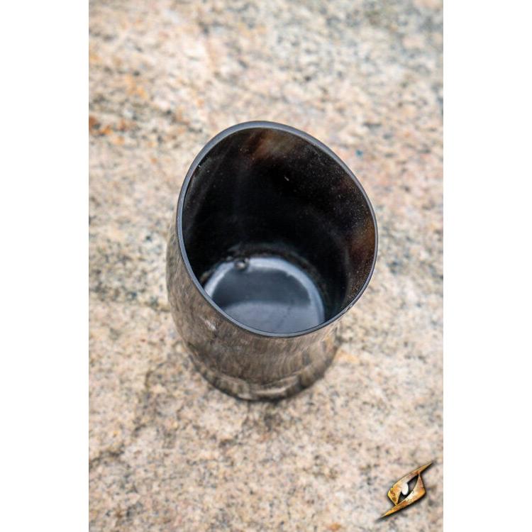 No matter the style of player, Epic Armoury's Adventurer Horn Cup in the dark horn finish is always useful. Each of our horn cups are hand-selected, hand-polished as well as hand-cut. Like Vikings, our craftsmen carefully polish, clean, and seal each vessel for safe usage. Our period drinking cups are odorless and are the perfect accessory to drink mead. Each mug has rich shades of colour and forms that are unique to their own. Our natural horn cups are extremely durable when properly maintained and can accommodate room temperature beverages, such as water or ale. They are highly portable and perfect for Larps or medieval banquets.