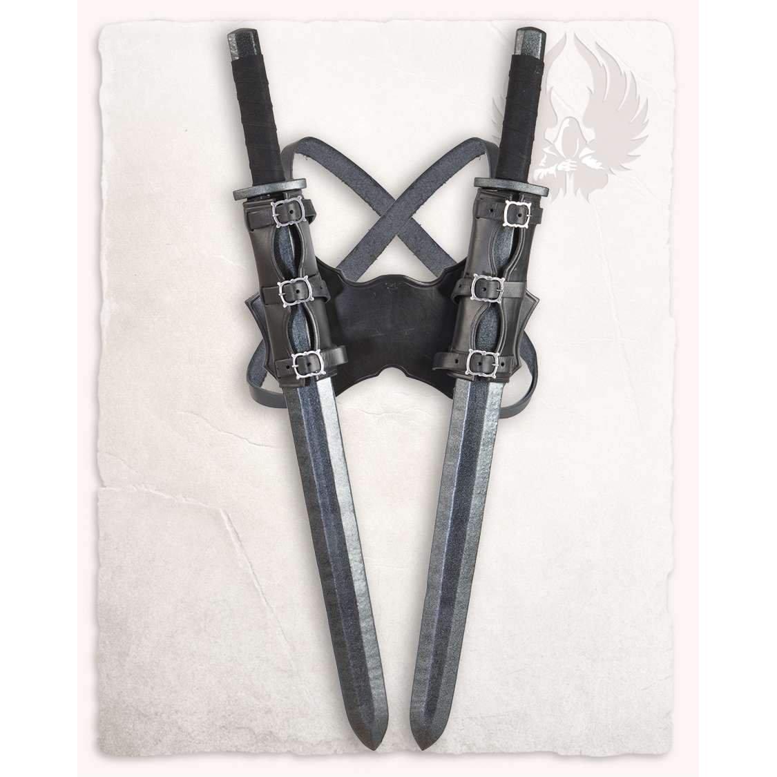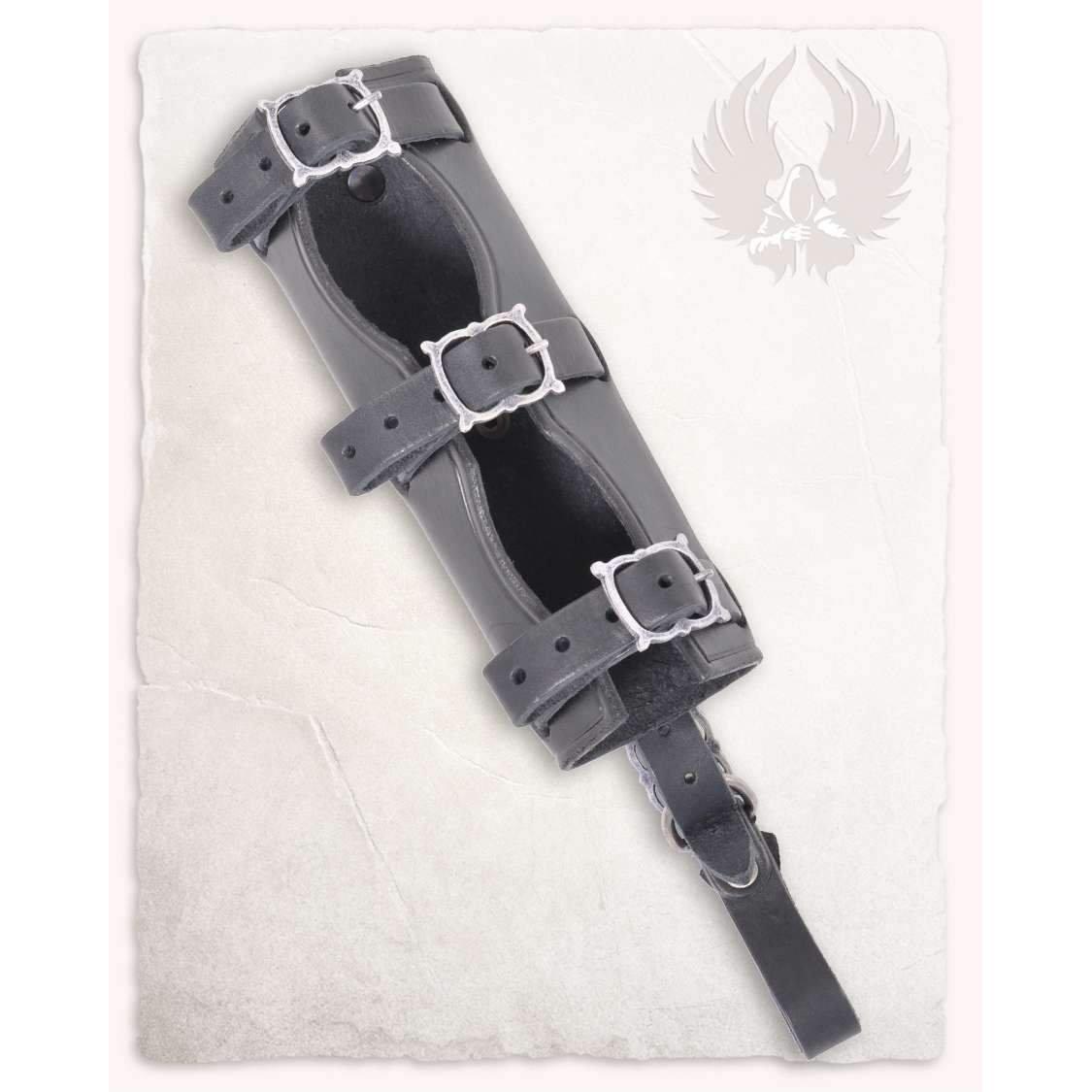 The "Castagir" series' open sword sheath is made by the italian manufacturer "Fucina del Drago" and was fabriced from high quality upper leather. It can be either worn on a belt or the matching back system or crossbelt from our "Castagir" series.