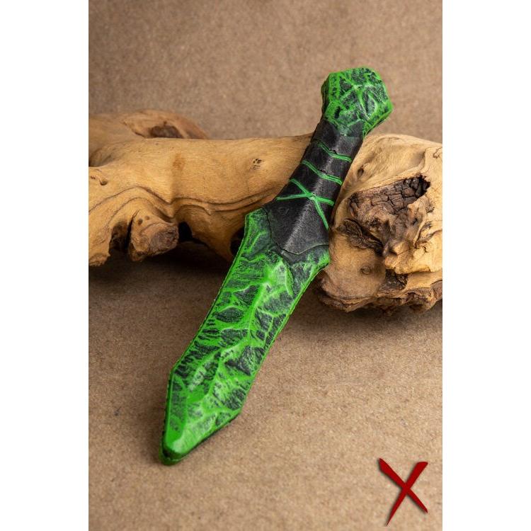 The Poison Throwing Knife is a menacing weapon designed for those who seek a deadly and sinister edge in battle. This enigmatic shard knife features a striking green hue, evoking the dangerous allure of poison. This knife is perfect for assassins, rogues, or anyone looking for a venomous addition to their arsenal.
